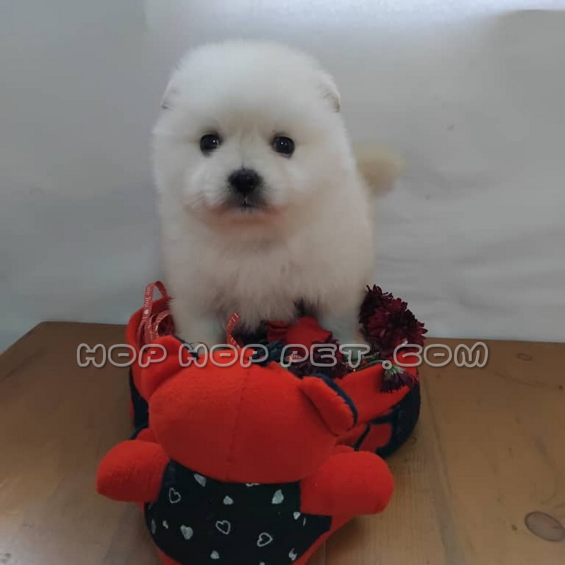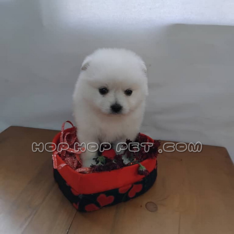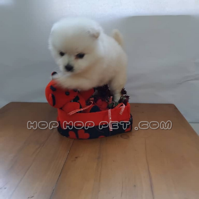 توله سگ پامر ماده سفید برفی ۴۵ روزه در مرحله ی اول رشد و شکوفایی قرار دارد و سرشار از انرژی و کنجکاوی است. موهای سفید و نرم این توله سگ همچون برف درخشان بوده و چشمانش که همچون دکمه های کوچکی به نظر می رسند، با نگاه های بازیگوش و معصومانه دل هر بیننده ای را می ربایند. اندازه کوچک و جمع وجور این توله سگ پامر، آن را به یکی از محبوب ترین نژادهای سگ برای نگهداری در خانه های کوچک و آپارتمان ها تبدیل کرده است.