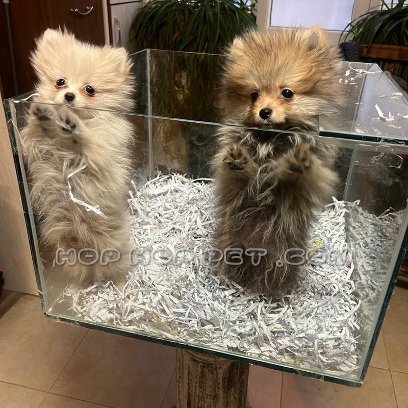 یک جفت توله پامر روباهی کرم و قهوه ای نر و ماده دو ماهه