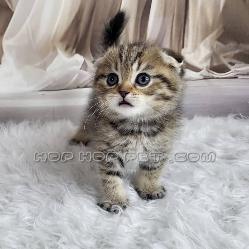 توله گربه اسکاتیش نر دو ماهه راه راه طوسی و کاراملی